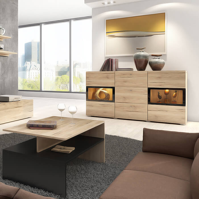 - Madeira Maciça: A madeira maciça é um material clássico que nunca sai de moda. É durável, robusta e disponível numa variedade de acabamentos. Os aparadores de madeira maciça podem ser um pouco mais caros, mas a sua beleza e longevidade muitas vezes justificam o custo adicional.
