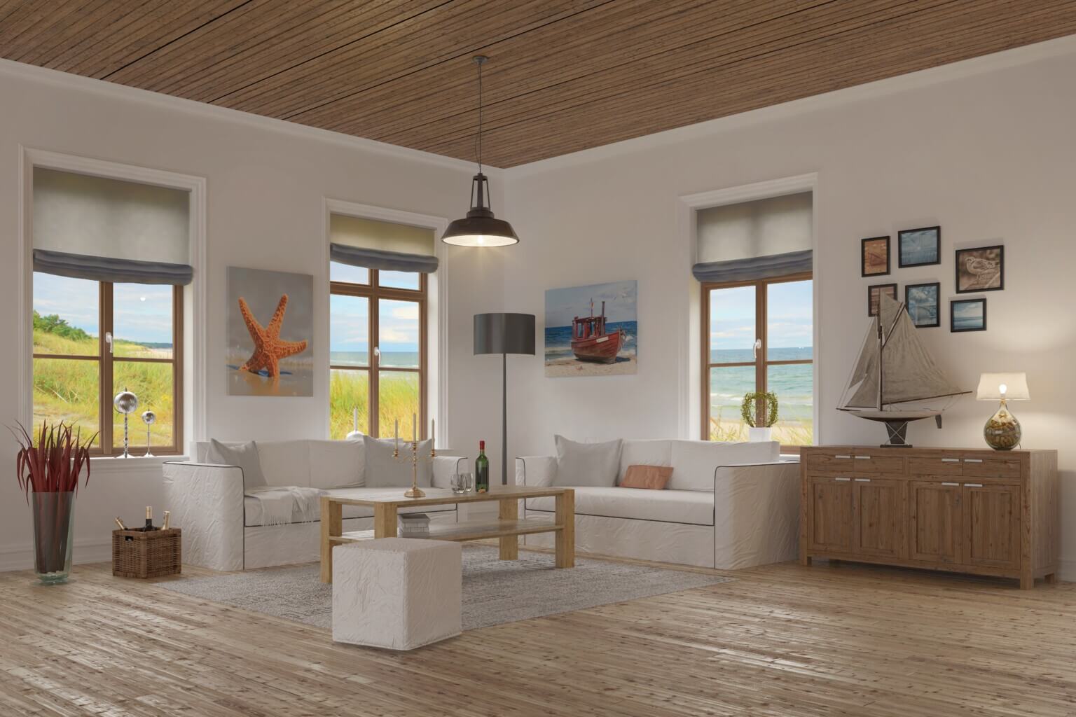 A decoração costeira é um tipo de interior inspirado na praia que conta com luz natural, uma paleta suave onde o azul e o azul-claro não podem faltar, uma sensação arejada, texturas naturais e alguns itens e motivos relacionados à praia ou ao mar.