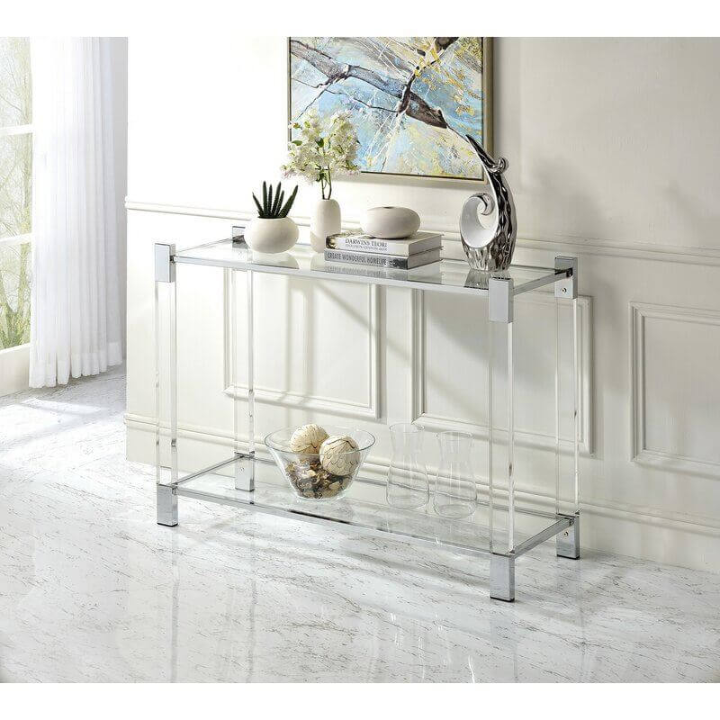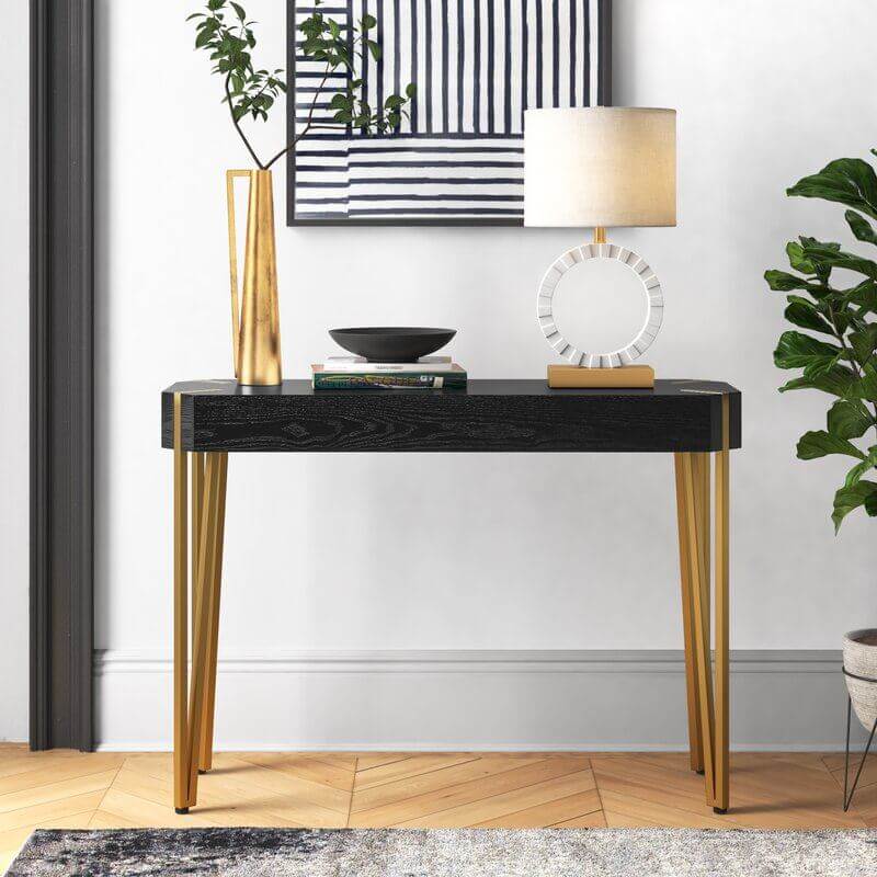 Se procura outras formas de incorporar um escritório em casa, considere uma consola elegante. Coloque uma mesa de consola com dois bancos sem costas, o espaço rapidamente se transforma de uma mesa de entrada elegante num escritório doméstico funcional.