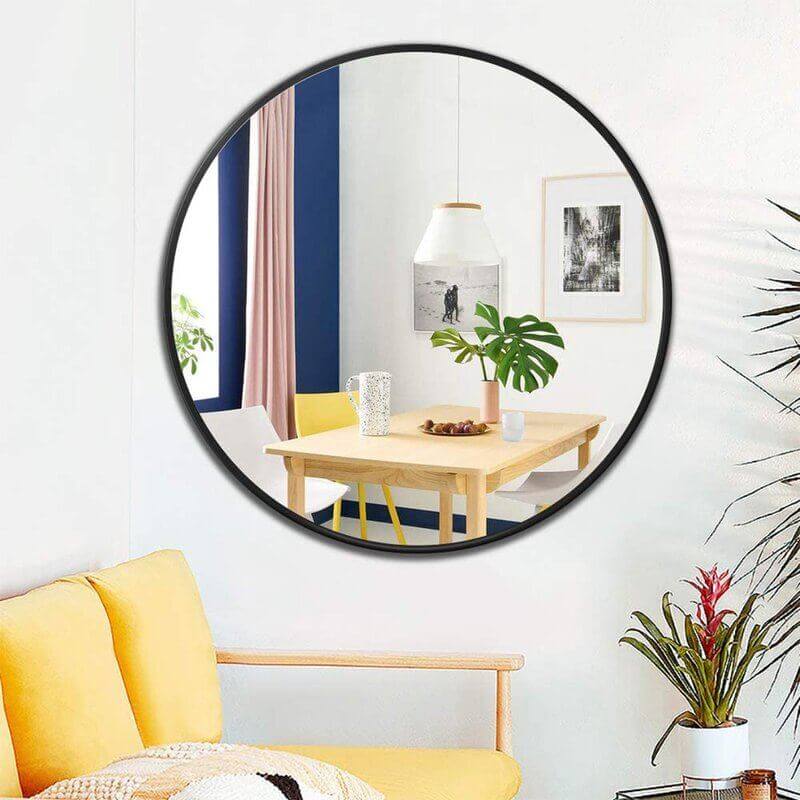 Se procura formas de tornar os seus pequenos espaços mais expansivos, considere a possibilidade de colocar um espelho em vez de arte na parede. Um espelho aumenta a profundidade do espaço e acrescenta luz.