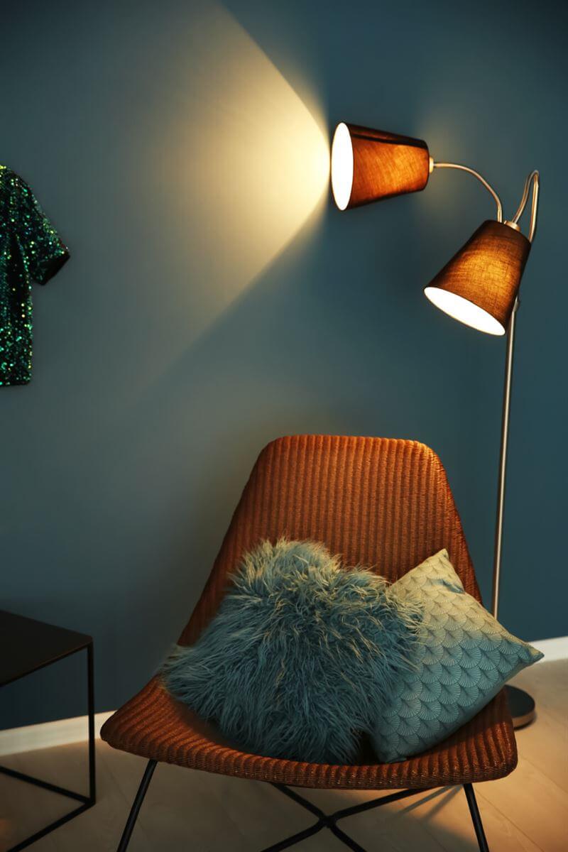 Deve também colocar unidades de iluminação para criar um brilho quente e acolhedor através de arandelas, candeeiros de mesa e de chão, e velas. E certifique-se de que não bloqueia as suas janelas com mobiliário volumoso, de modo a obter o máximo de luz do dia possível.