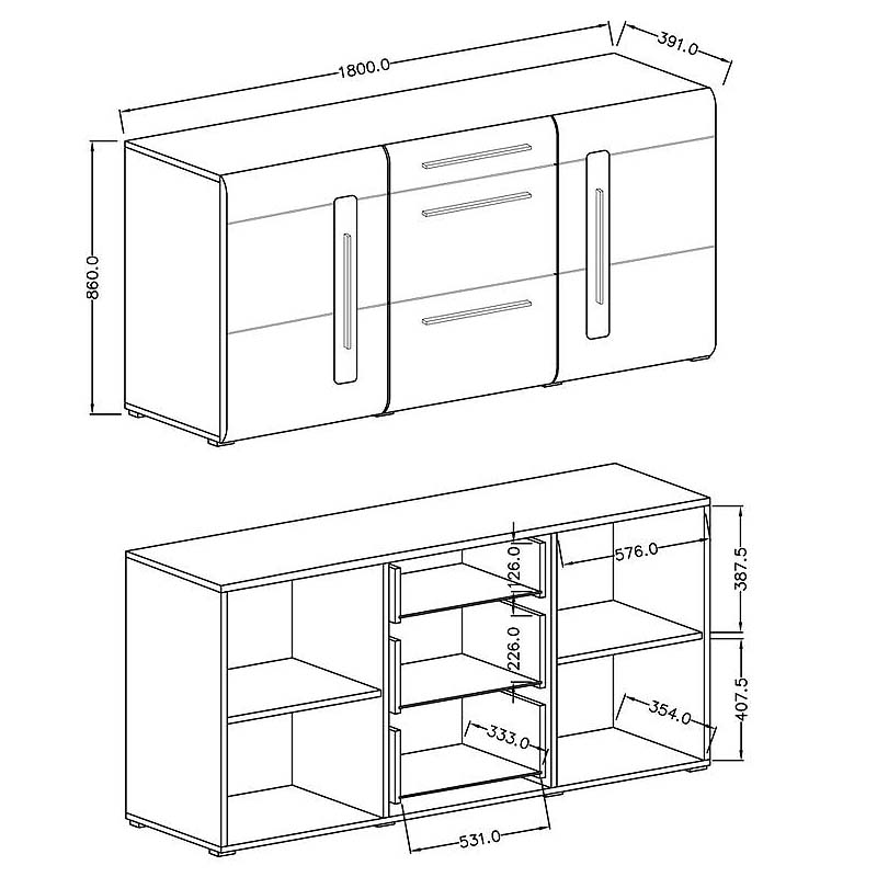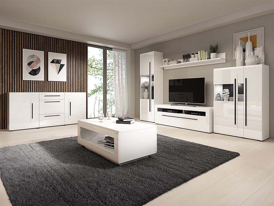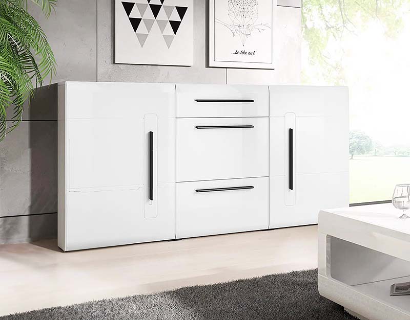 Com linhas limpas e um acabamento brilhante, o Aparador Branco Tulsa destaca-se pela sua estética moderna e pela capacidade de arrumação.