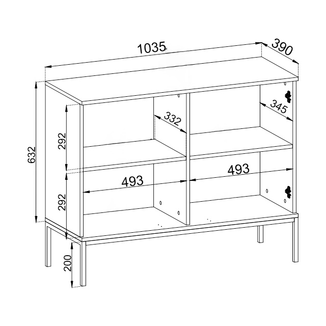 - Aparador 2 Portas: 104/83/39 cm.