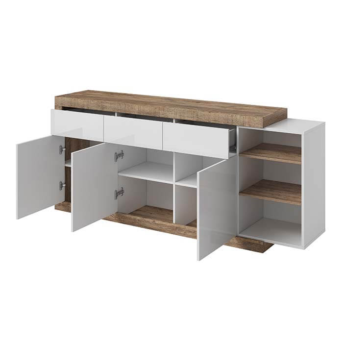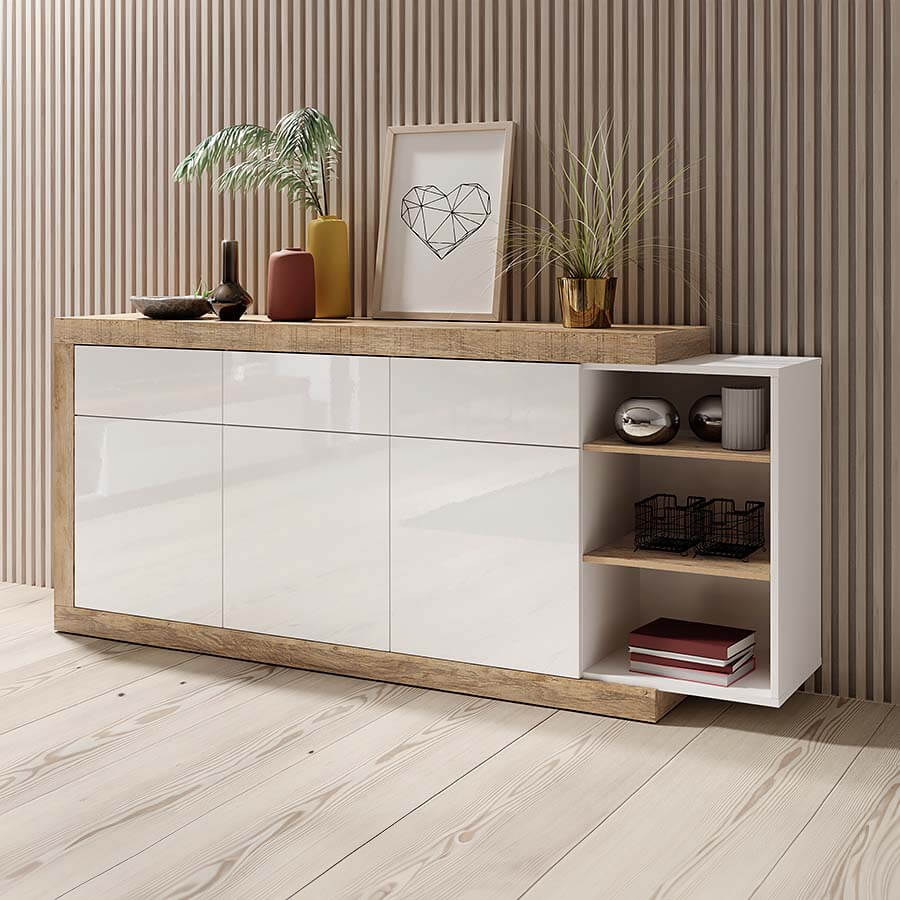 Aparador com Estante e Gavetas em Branco e Carvalho | Sintra