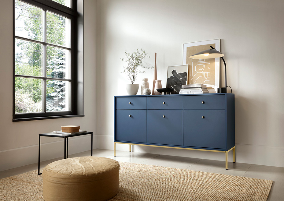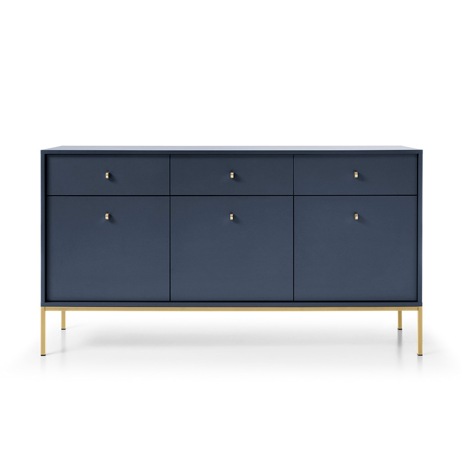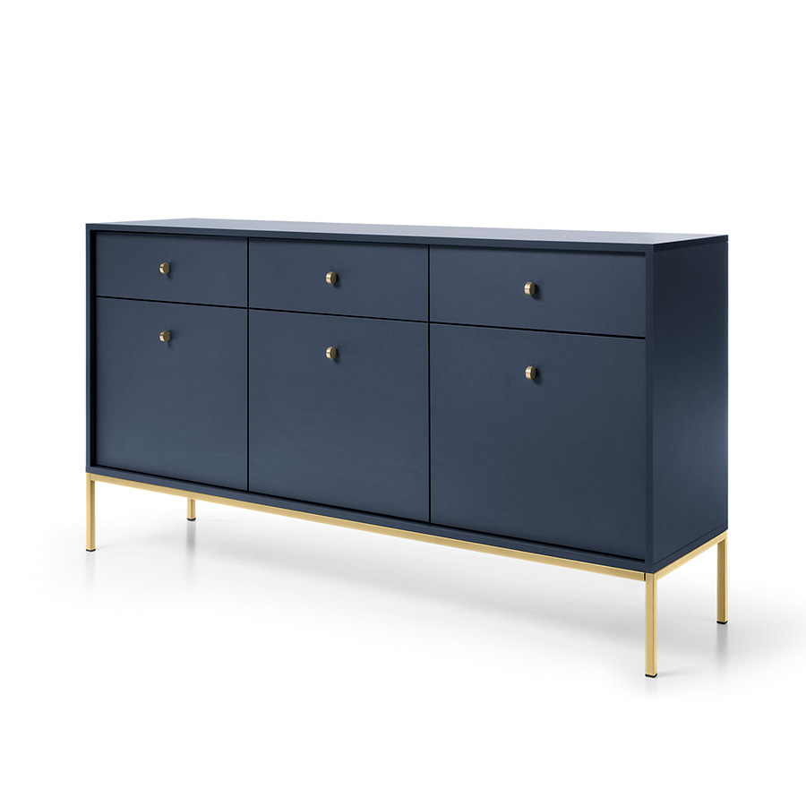 Aparador Largo Azul Navi com Pernas em Dourado Mono