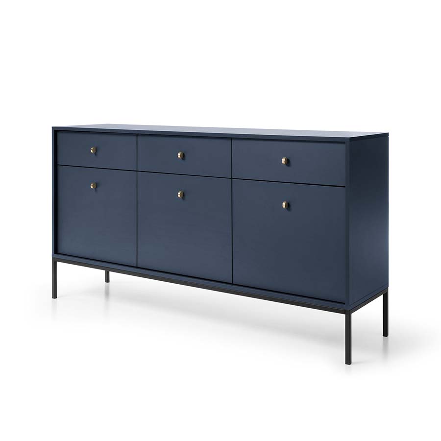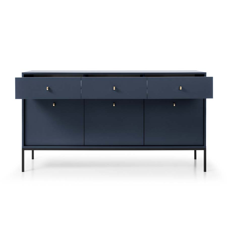 Aparador Largo Azul Navi com Pernas em Preto Mono