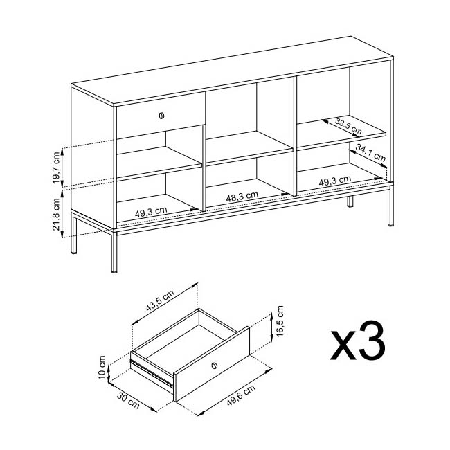 - Aparador Largo: 153.4/83.2/39 cm.