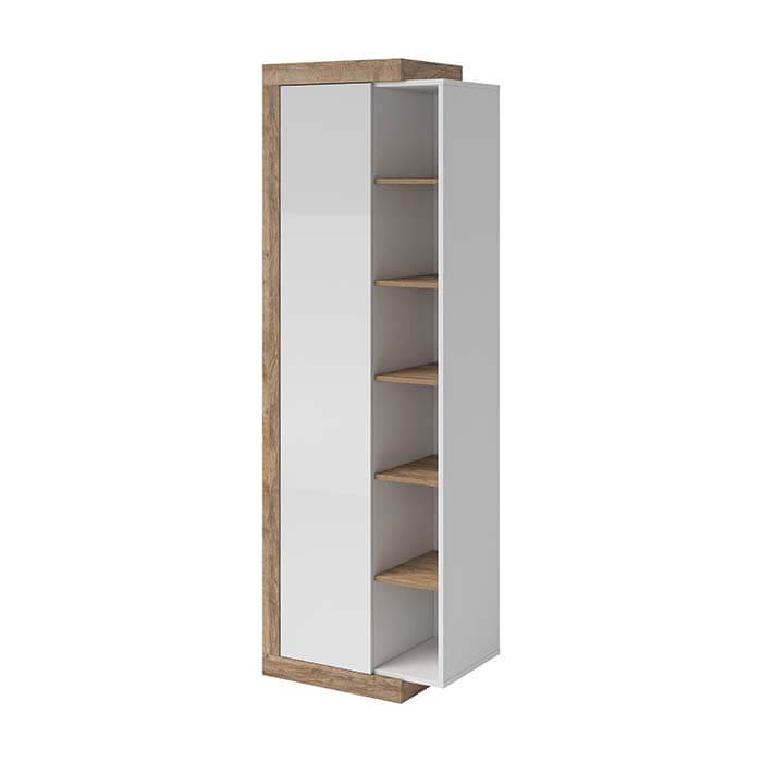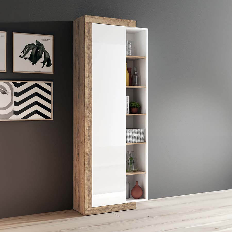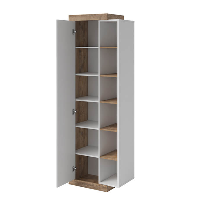 O Armário com Estante em Branco e Carvalho da coleção Sintra é uma peça de mobiliário moderna que combina elegância e funcionalidade. Este armário oferece uma solução de arrumação inteligente e discreta, permitindo-lhe organizar o seu espaço de forma eficiente. Além disso, a estante integrada proporciona uma área adicional para expor decorações ou armazenar livros e outros objetos essenciais.