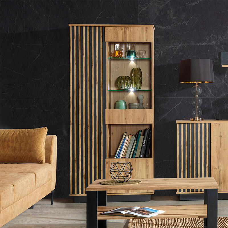 Vitrine com três Portas Carvalho e Preto Lamelo