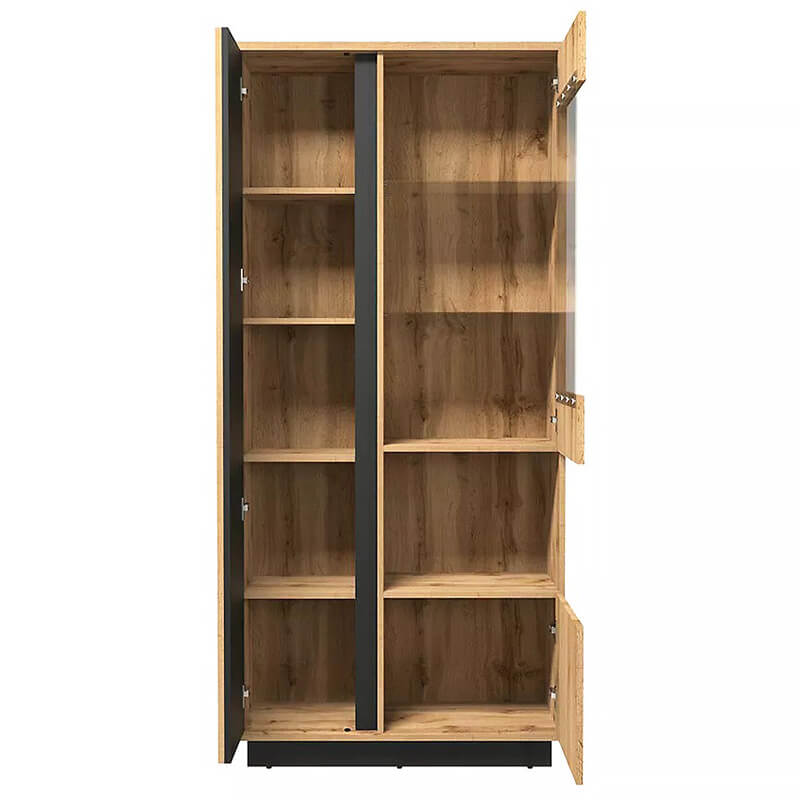 Armário Vitrine com três Portas Carvalho e Preto