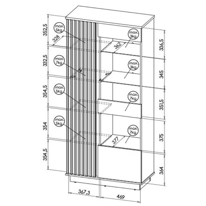 Armário Vitrine ripado com três portas: 90/40/193,6 cm