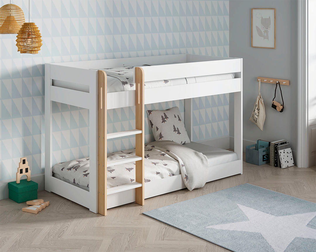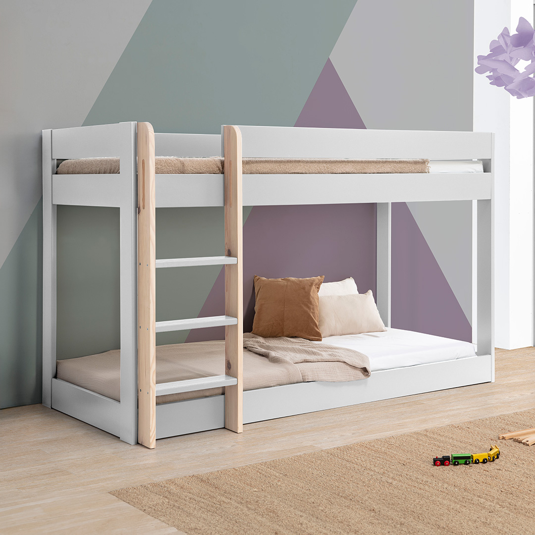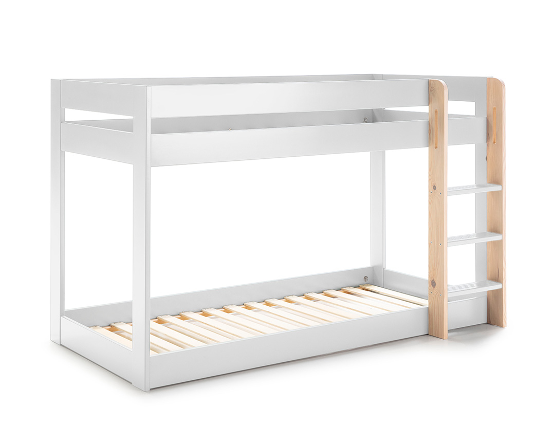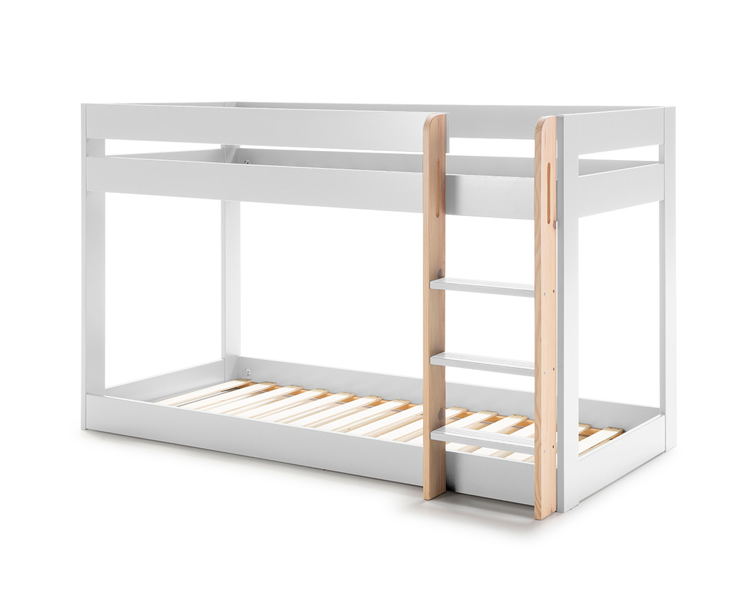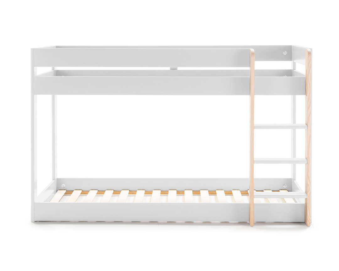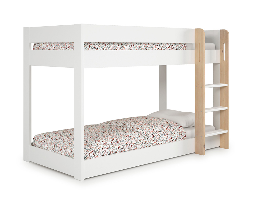 • Estrutura em MDF lacado a branco • Escada e estrados em pinho natural • Adequado para colchões de 90x190 cm • Versátil e adaptável a diversos estilos de decoração • Seguro e estável para crianças • Fácil montagem (kit de móvel) • Peso: 65 kg