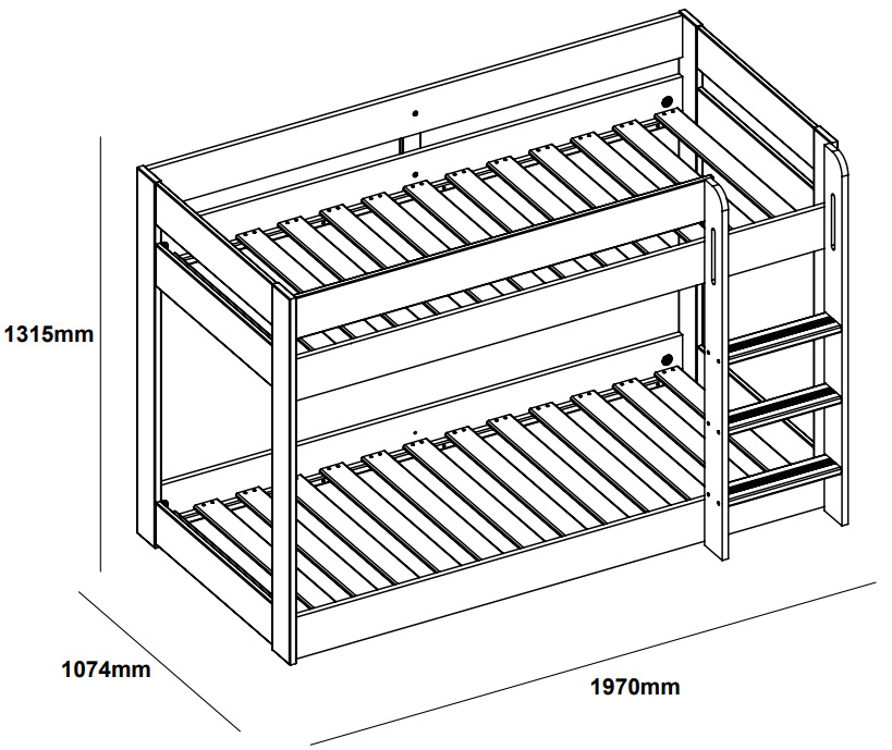 O Beliche Angel combina segurança, funcionalidade e estilo moderno. Ideal para famílias em crescimento este beliche é compatível com colchões standard de 90x190 cm, garantindo conforto para todas as idades.