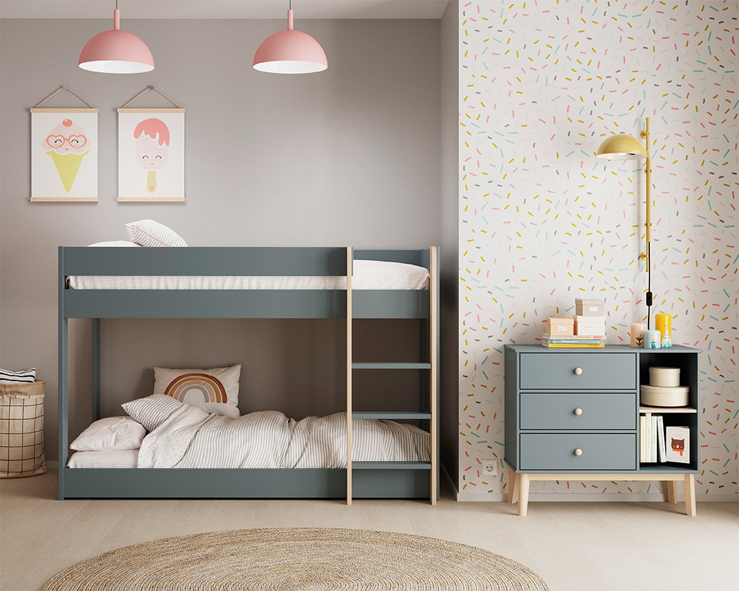 A sua construção de qualidade assegura durabilidade, enquanto o design minimalista se adapta facilmente a qualquer decoração. Poupe espaço e dinheiro com esta solução prática e económica, perfeita para otimizar quartos infantis e juvenis.