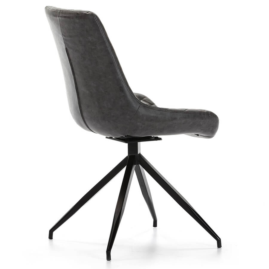 Conjunto de 4 Cadeiras Giratórias Vintage Couro Cinzento