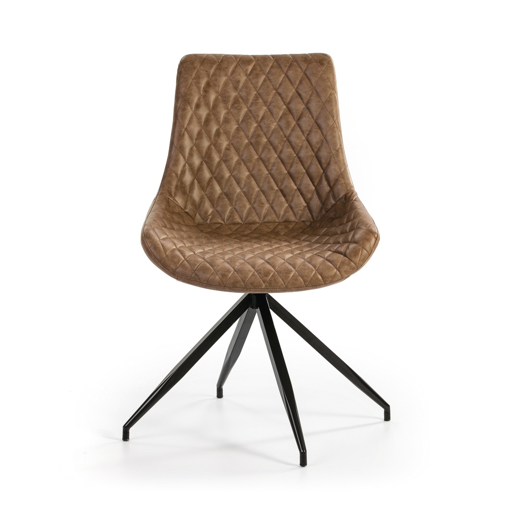Cadeira de Jantar Giratória 360.º em Pele Castanho
