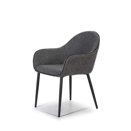 - Estofada com tecido cinza escuro. - Estrutura em metal preto. - Design ergonómico. - Tecido de alta qualidade, respirável e resistente. - Objetos de decoração não incluídos. - Peso por unidade: 3.8 kg.