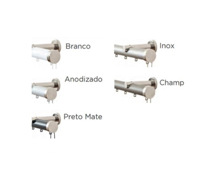 | Especificações a) Se não especificar o espaçamento entre ganchos, os kits serão enviados com espaçamento de 75mm. Pode ser ajustado para: 55, 60, 65, 70 e 80 mm. Suportes de parede com a medida de 13 cm. b) Acima de 400cm, as calhas serão cortadas ao meio e entregues com união metálica. |