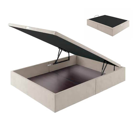 Esta cama estofada com sommier elevatório é perfeita para arrumar mantas, roupões, édredons, lençóis e outros complementos, que roubam espaço às gavetas e aos roupeiros.