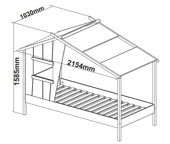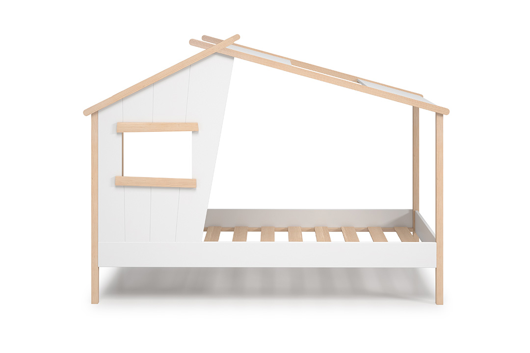 Com formato de cabana e telhado estilizado, esta cama traz um toque de aventura para o quarto infantil. A janela embutida estimula a imaginação e cria um espaço único para brincadeiras.