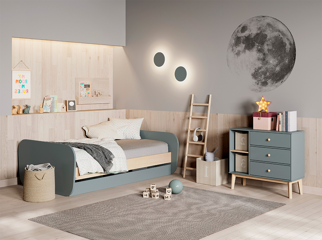 A gaveta integrada pode alternativamente ser um espaço de arrumação adicional, mantendo o quarto organizado e aproveitando cada centímetro disponível.