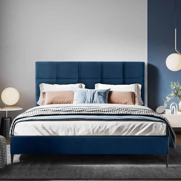 Esta Base de cama estofada garante mais sofisticação para a decoração do quarto.