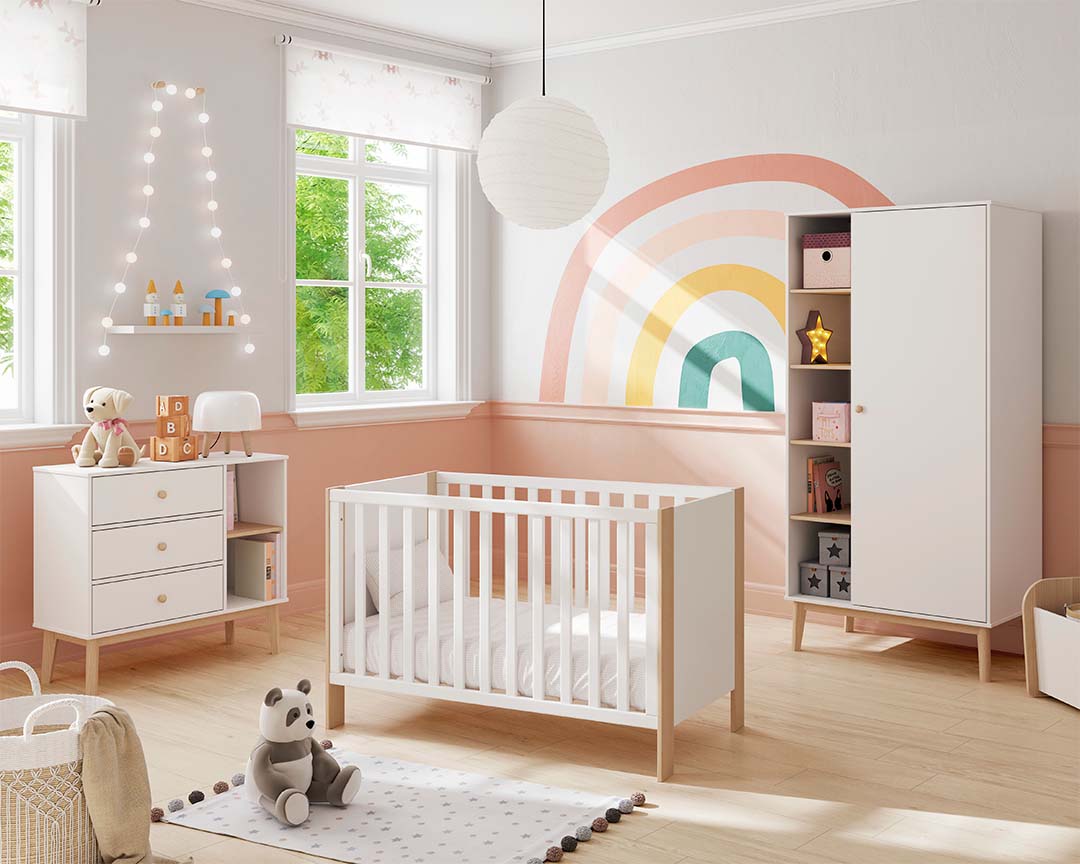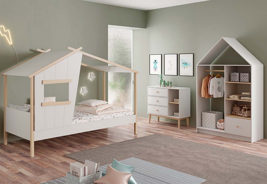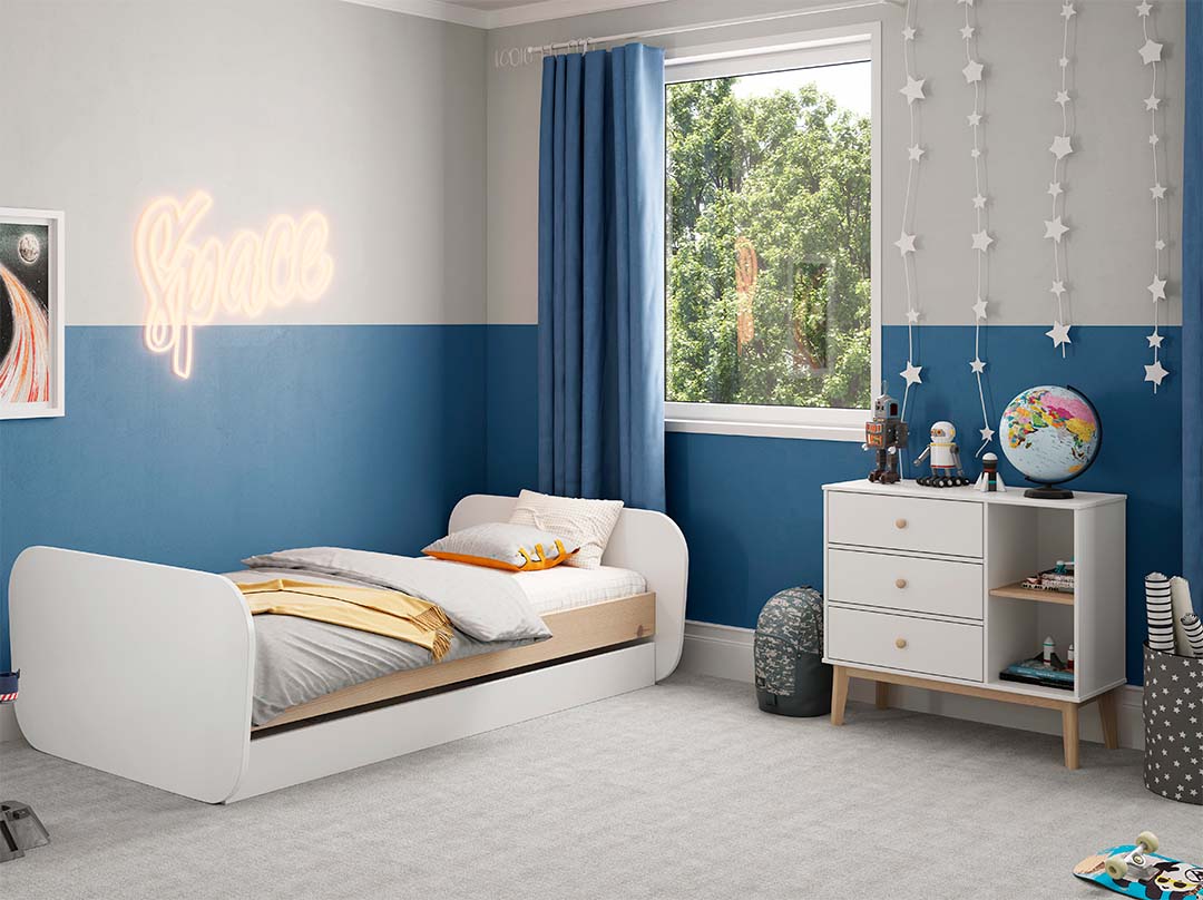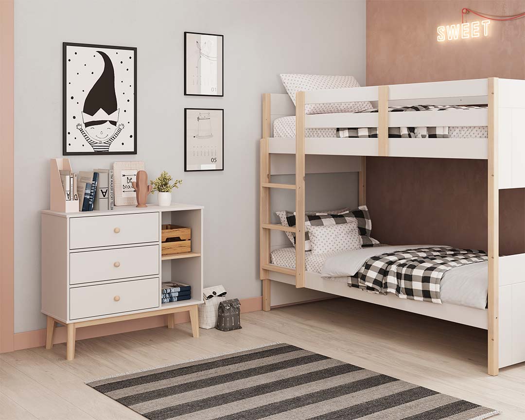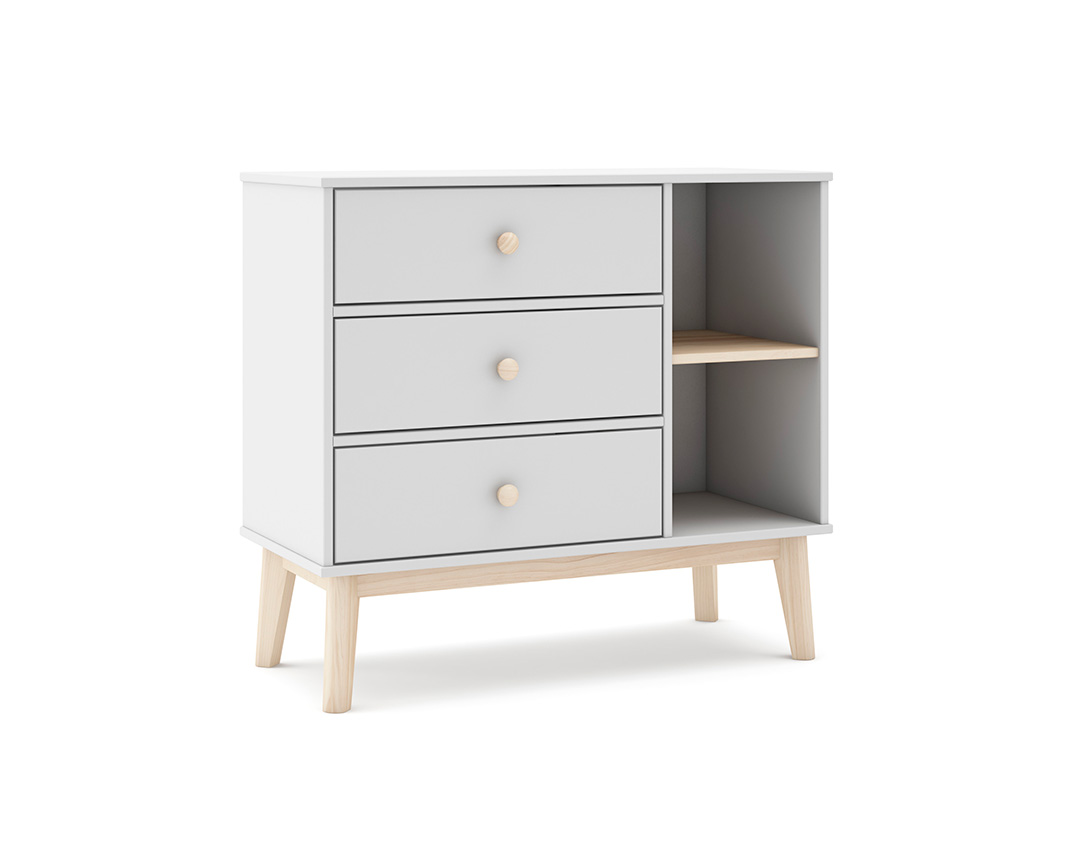 Adequada para crianças de todas as idades. Móvel de arrumação prático e durável. Gavetas deslizantes com puxadores de madeira.