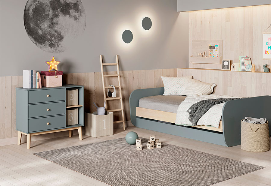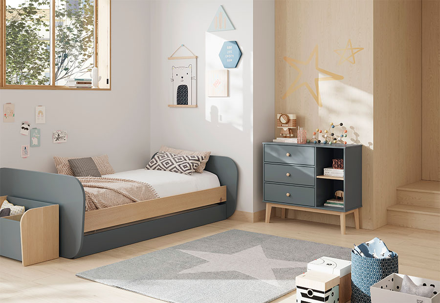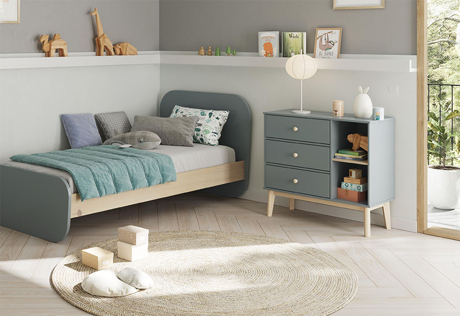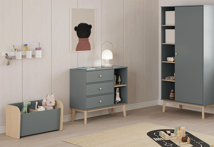 Adequada para crianças de todas as idades. Móvel de arrumação prático e durável. Gavetas deslizantes com puxadores de madeira.