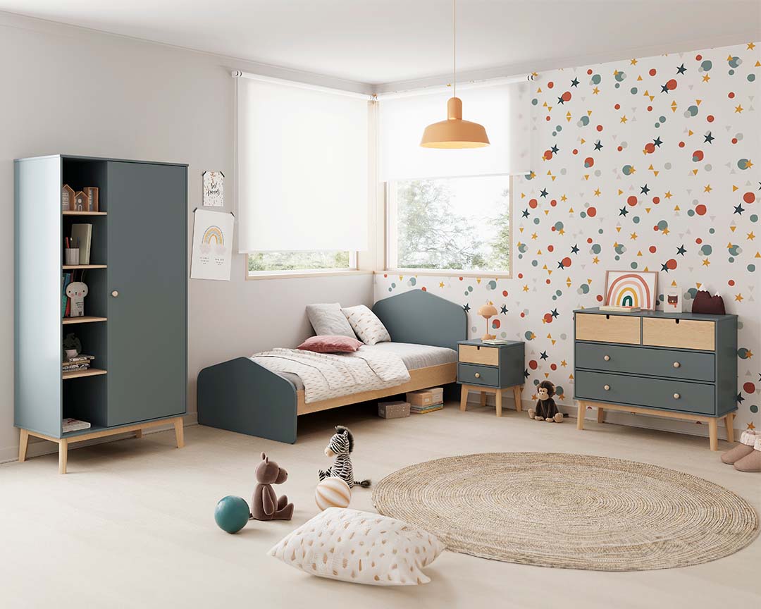 Adequada para crianças de todas as idades. Móvel de arrumação prático e durável. Gavetas deslizantes com puxadores de madeira.