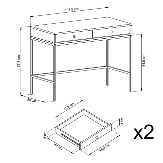 - Consola com 2 Gavetas: 103.5/77.6/50 cm.