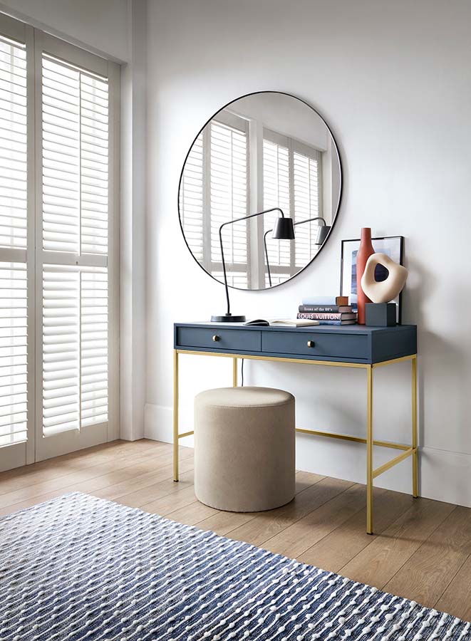 Esta consola pode ser usada em diferentes contextos, desde um móvel de entrada ou como elemento de destaque numa sala de estar ou escritório.