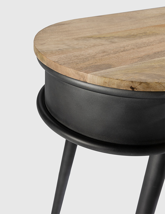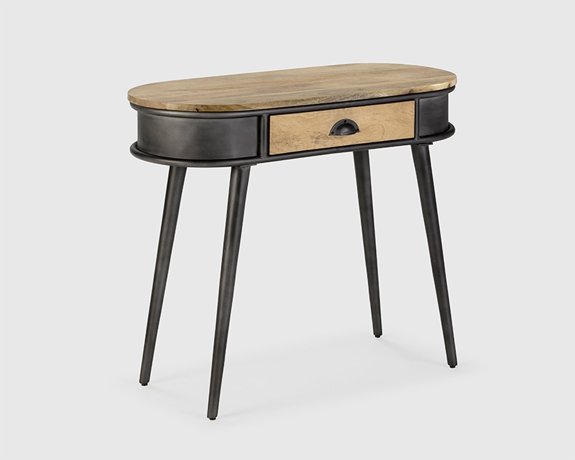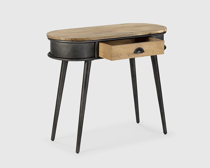 Consola de Metal Preto e Tampo de Madeira com Gaveta