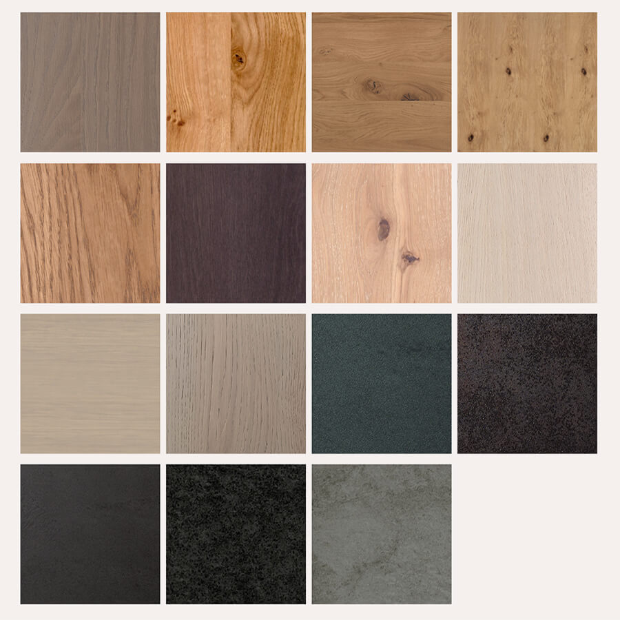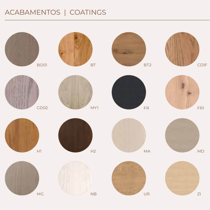 Vários acabamentos e cores disponíveis online ou no Atelier de Decoração com amostras reais. Personalize os acabamentos do mobiliário.
