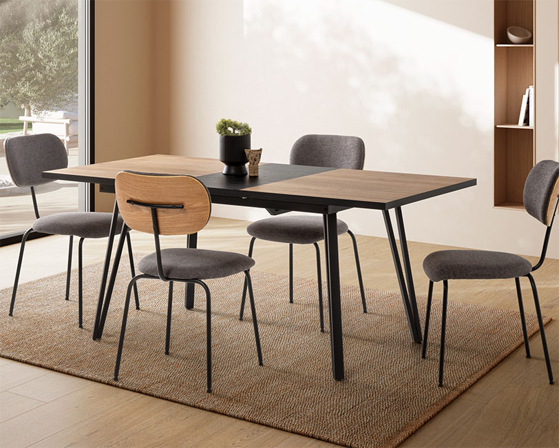 Com um design moderno e elegante, esta mesa adapta-se facilmente a diferentes necessidades de espaço, sendo ideal para jantares em família ou reuniões com amigos.