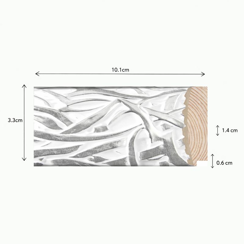 A Moldura Coleção Lisboa N106 destaca-se pelo seu desenho artístico e acabamento prata texturizado, que cria um efeito visual sofisticado e contemporâneo. O relevo orgânico, inspirado em formas naturais, confere movimento e exclusividade à peça, tornando-a um verdadeiro elemento de destaque na decoração.