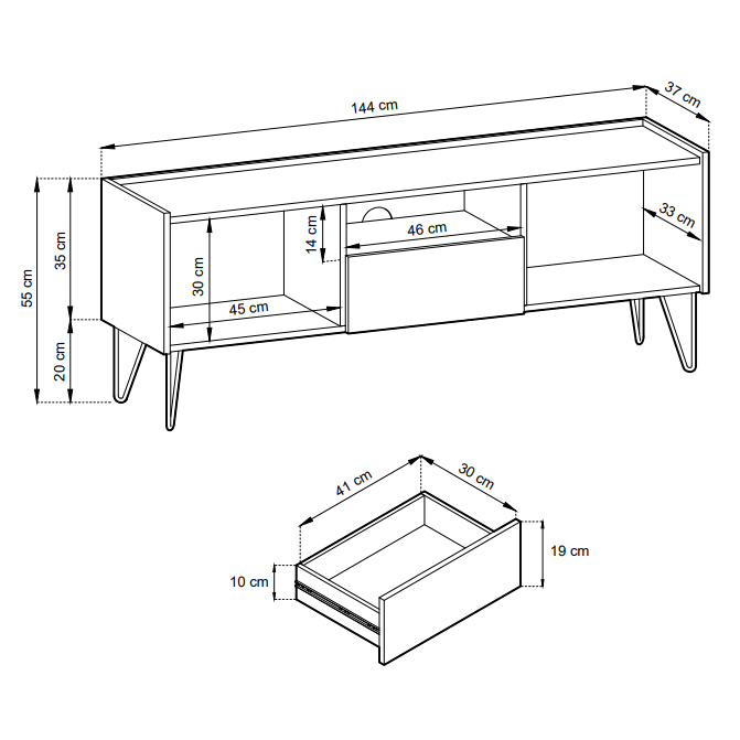 - Móvel TV: 144 / 55 / 37 cm
