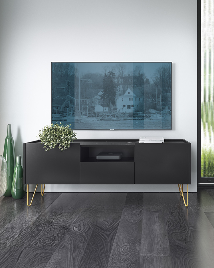 Móvel TV Cinzento Escuro e Dourado Harmony