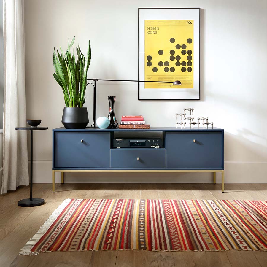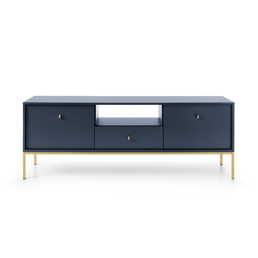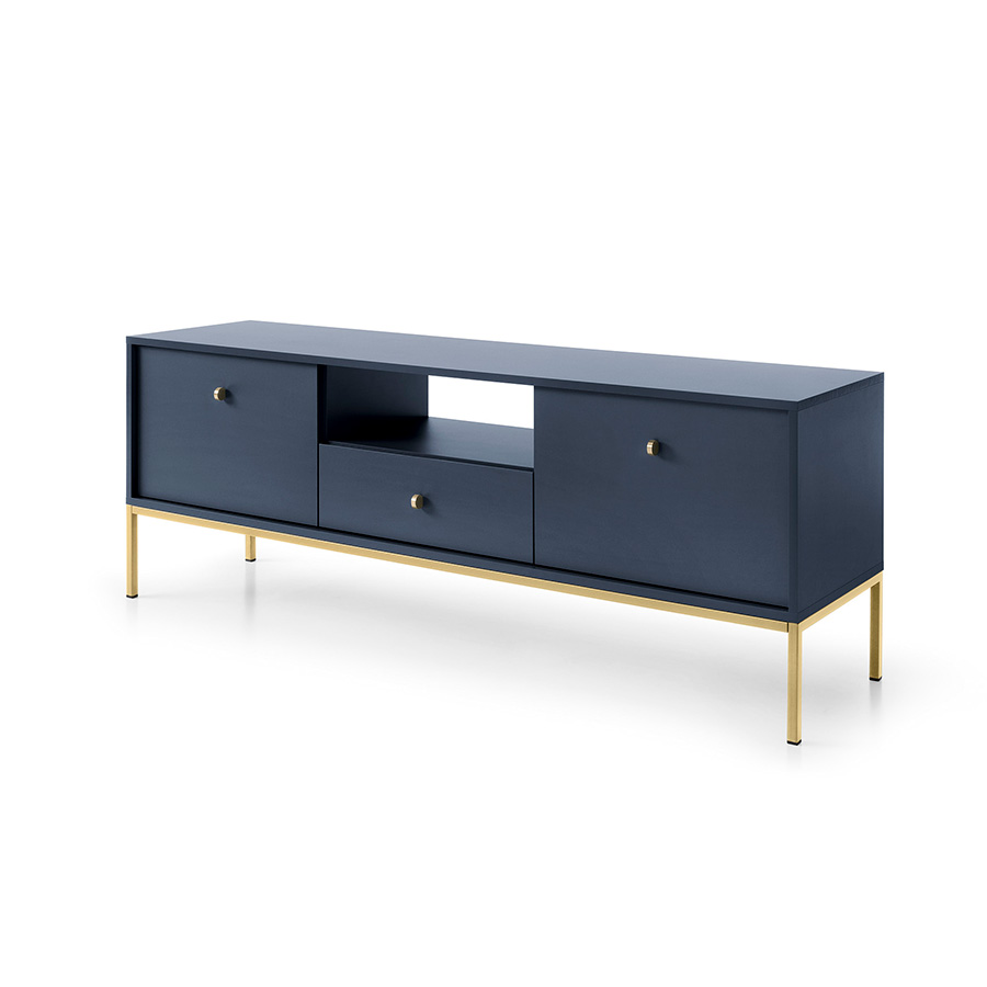 Móvel TV Azul Navi com Pernas em Dourado Mono