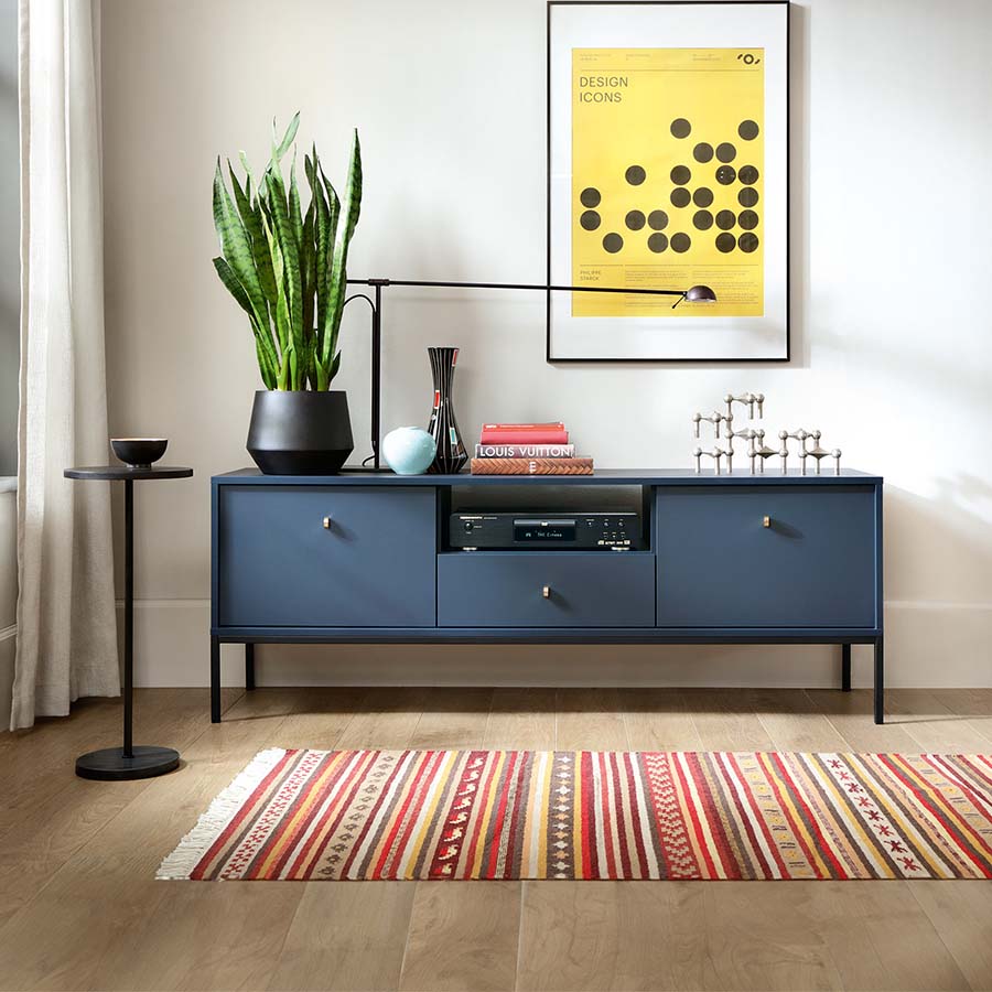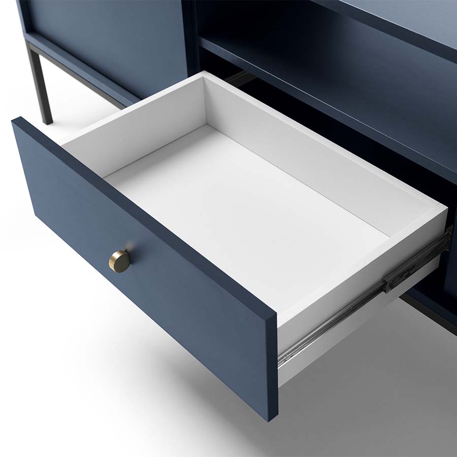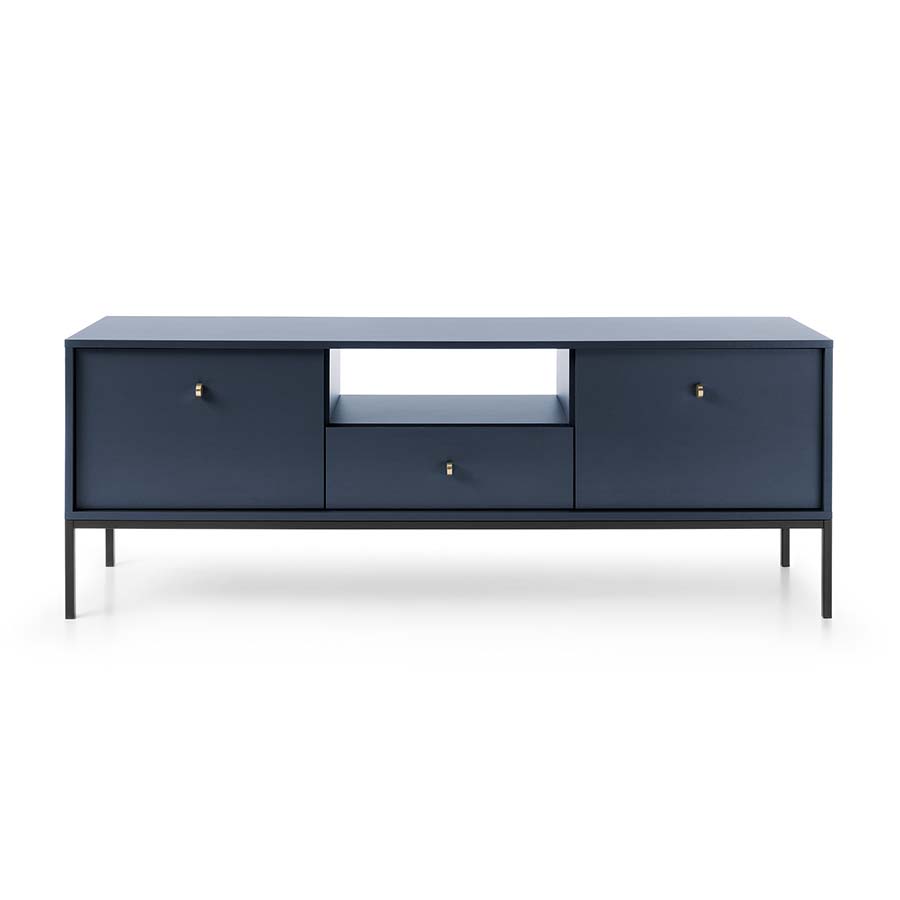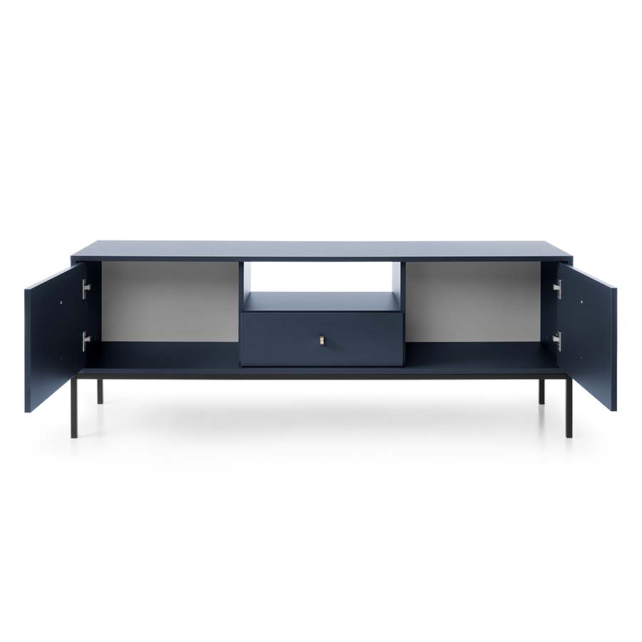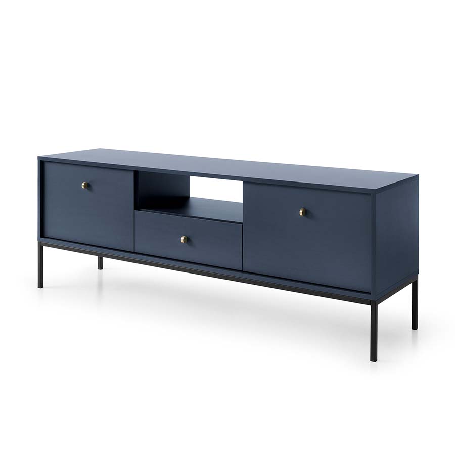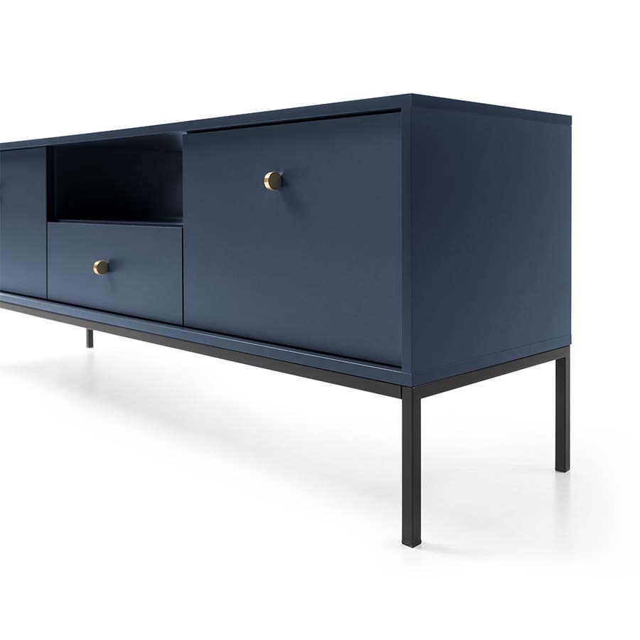 Móvel TV Azul Navi com Pernas em Preto Mono