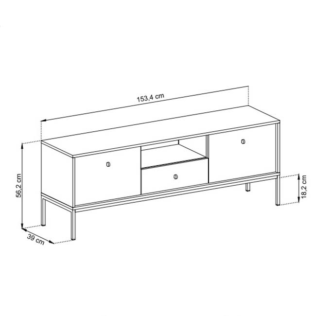 - Móvel TV 2 Portas e 1 Gaveta: 153.4/56.2/39 cm.