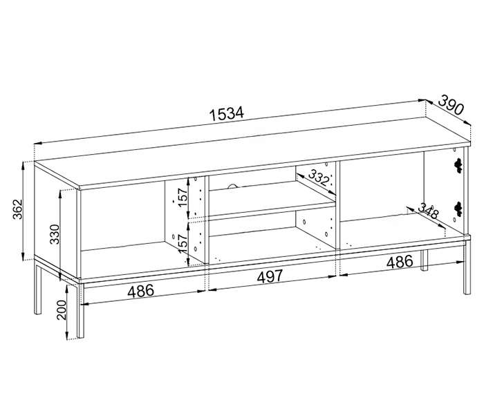 - Móvel TV 3 Portas: 154/56/39 cm.