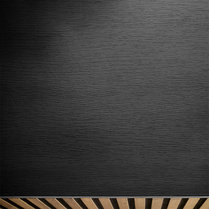 - Acabamento em Carvalho com ripas, tampo e pés em preto.