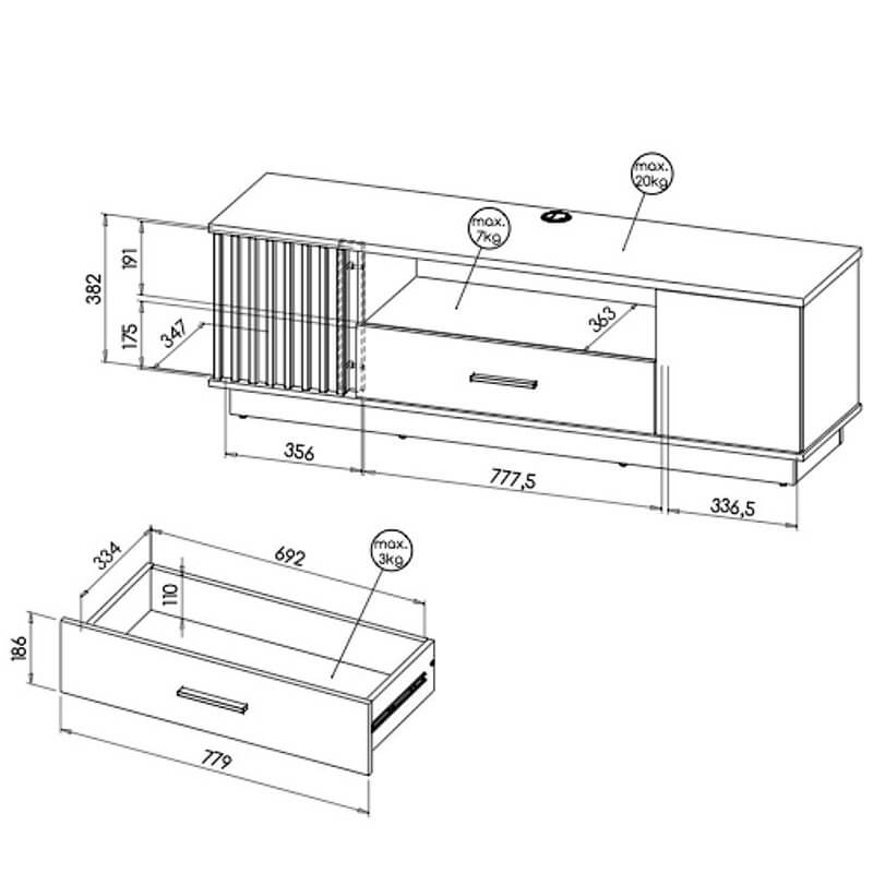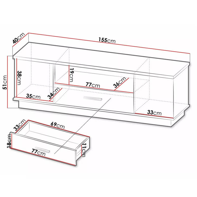 Móvel TV com gaveta e duas portas: 155/40/42 - 50,6 cm