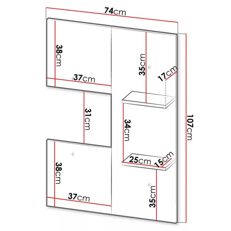Um par de prateleiras permite que mostre as suas peças de decoração favoritas, enquanto o recorte decorativo permite pendurar arte emoldurada ou fotos decorativas.
