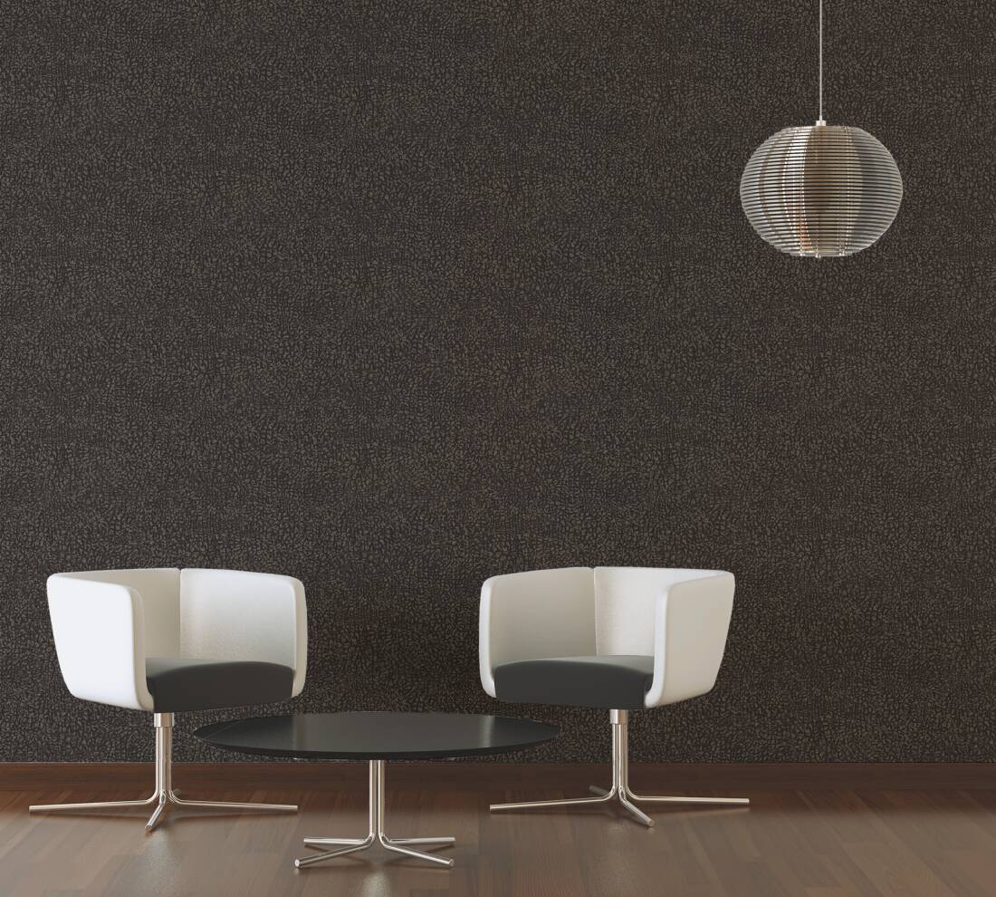 Esta proposta da Absolutely Chic apresenta uma textura versátil que irá coordenar com muitos dos designs de recursos dentro da coleção Absolutely Chic ou pode ser usada sozinha para adicionar calor e cor às suas paredes, mostrado aqui em tons de Castanho e Preto.
