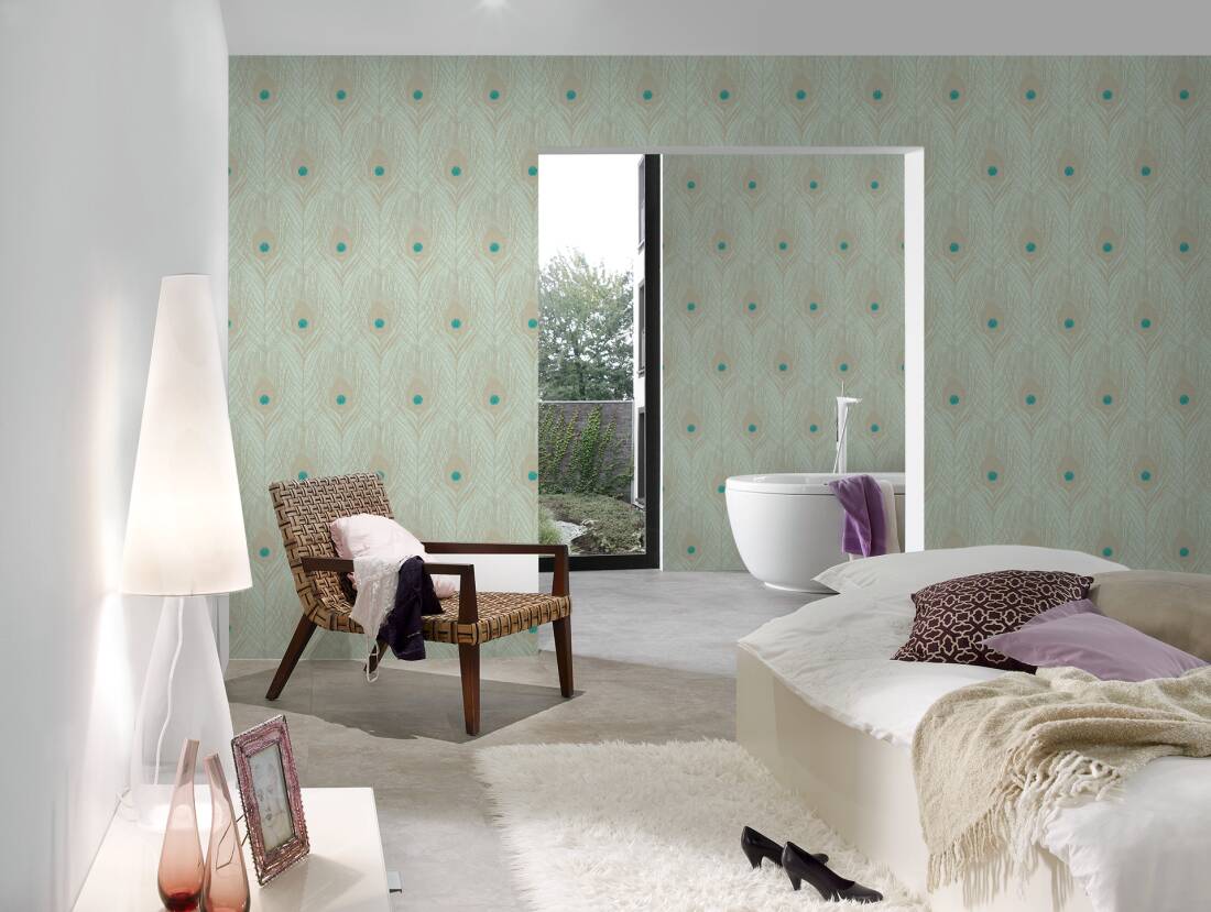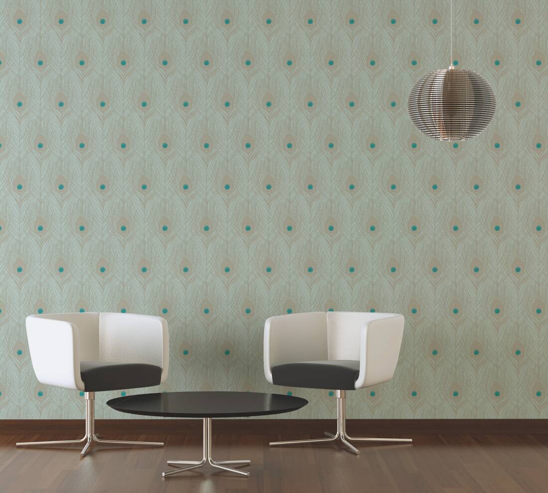 Papel de Parede Azul, Dourado, Verde, Turquesa Absolutely Chic