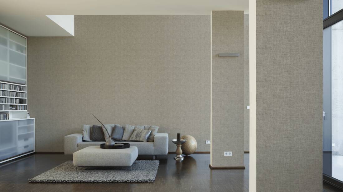 Esta proposta da Absolutely Chic apresenta uma textura semi-plana versátil que irá coordenar com muitos dos designs de recursos dentro da coleção Absolutely Chic ou pode ser usada sozinha para adicionar calor e cor às suas paredes, mostradas aqui em tons de bege / cinza.