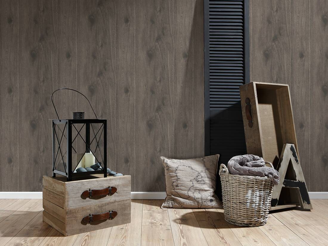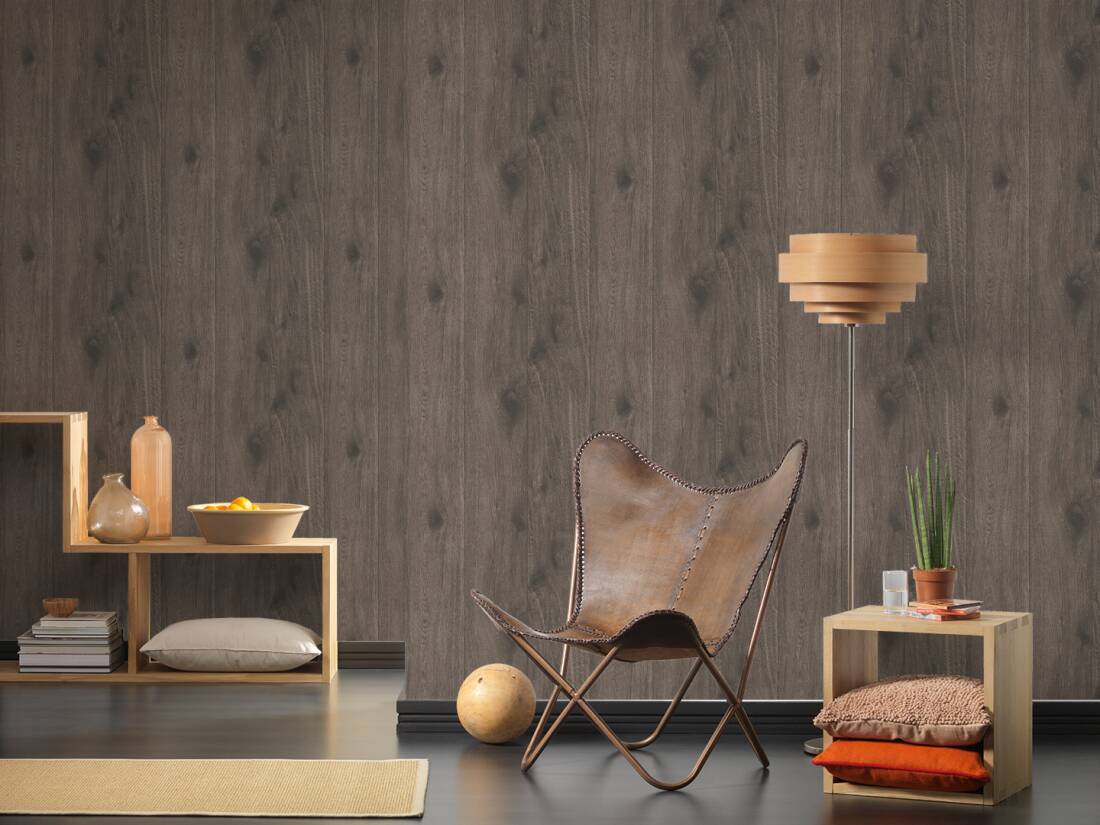 Papel de Parede Madeira, Casa de Campo, Cinzento, Castanho 30043-2