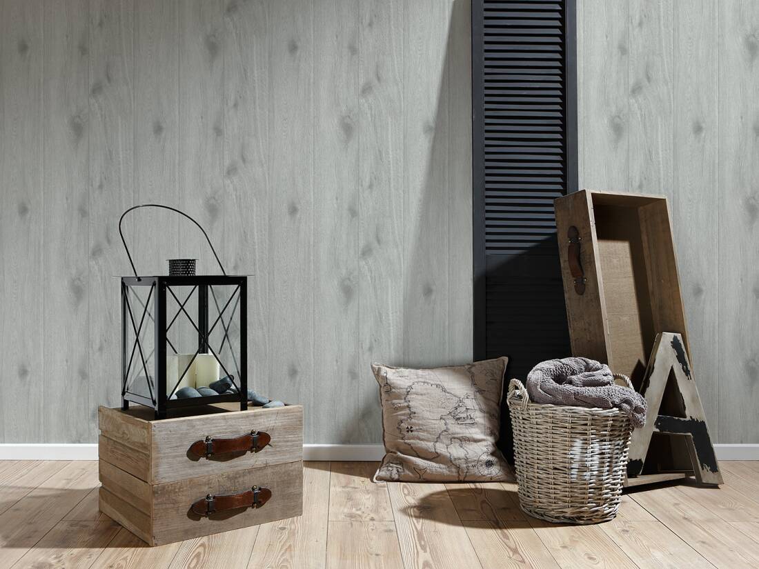 Proposta de Papel de Parede estilo Madeira, Casa de Campo, Cinzento.