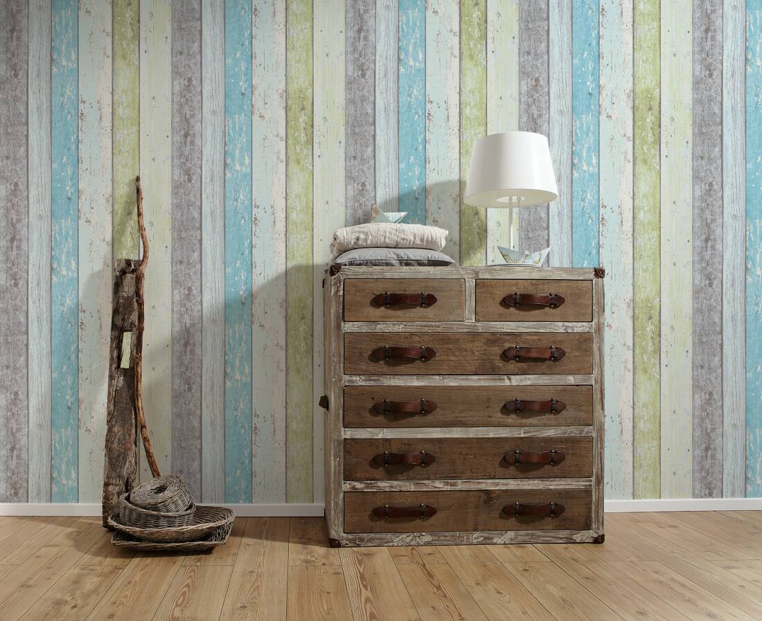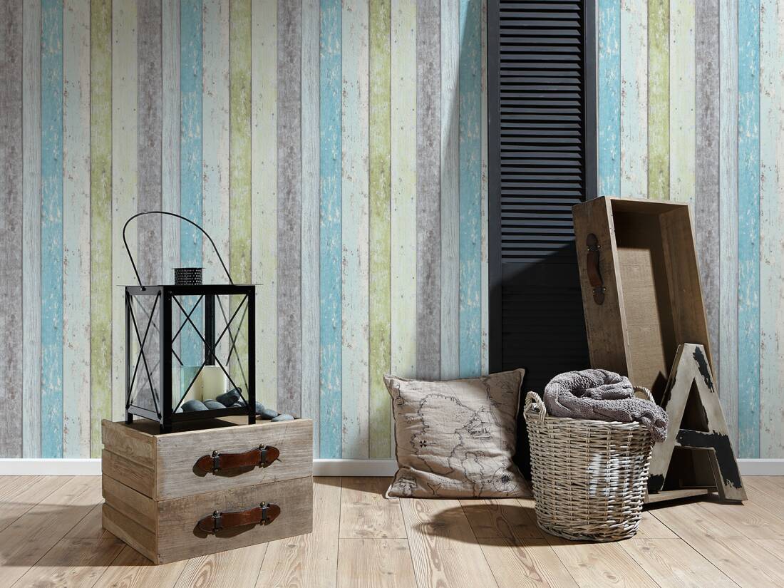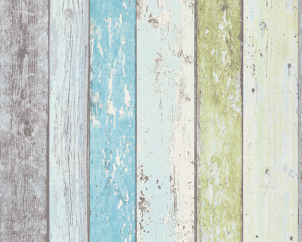Papel de Parede Madeira, Casa de Campo, Azul, Verde, Branco 8550-77